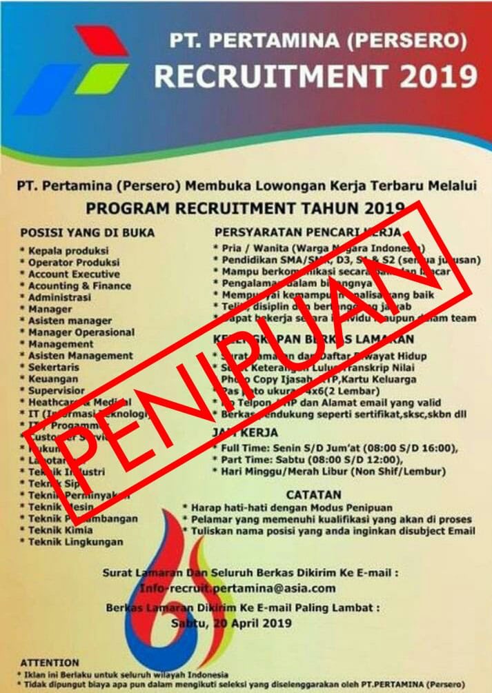 Recruitment-Pertamina @Asia.com - Pertamina On Twitter Sobat Harap Selalu Waspada Terhadap Penipuan Apapun Yang Mengatasnamakan Pertamina Ya Info Rekrutmen Hanya Melalui Https T Co 62icg8qfhj Dan Email Resmi Kami Recruitment Pertamina Com Dan Cek Sosmed Pertamina Secara Berkala - Pertamina siap menjadi energi perjuangan para guru memajukan pendidikan anak negeri.